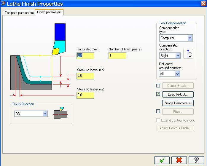 Roll cutter around corners :Chọn xử lý cạnh chi tiết hoặc không hoặc chạy theo hình dạng.